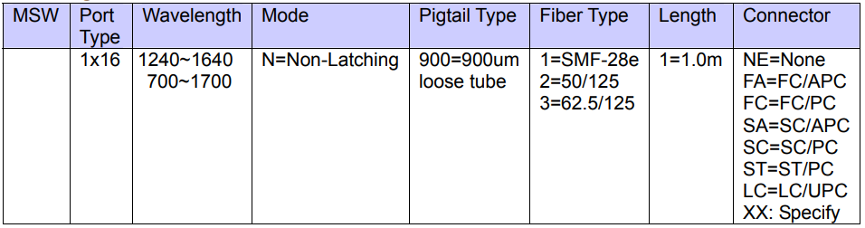 | ファイバタイプ | SMF-28e | 50/125,62.5/125 MM | |