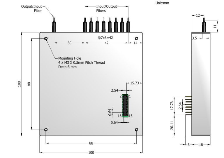 1×8 プリズムタイプ メカニカル光スイッチは、広範囲の光ファイバ・アプリケーションに最適化されています。設計は、世界中の電気通信、データ通信、システム監視、コンポーネントテストの要件に基づいています。この1×8/8×1 OSWモジュールは、1つの入力ポート、8つの出力ポートまたは8つの入力ポート、1つの出力ポートがあります。モジュールは、電気的接続のセットによって制御されます。 また、RoHSに完全準拠しています。