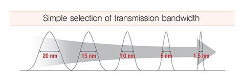 Custom Wavelength Selectorは、お客様がフィルター性能を得るための時間とコストをかけることなく、工場で正確にお客様の仕様に設定されたシンプルで頑丈なオプトメカニカルデバイスです。Custom Wavelength Selectorは、最適設定されたバンドパスフィルタですのでイメージング、顕微鏡、照明などの用途で理想的な状態でお使いいただけます。