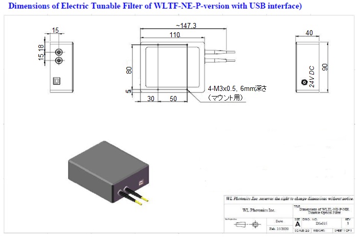■ 製品名:780-1000nm ガウシアン形状チューナブルフィルタ WL Photonics Inc.