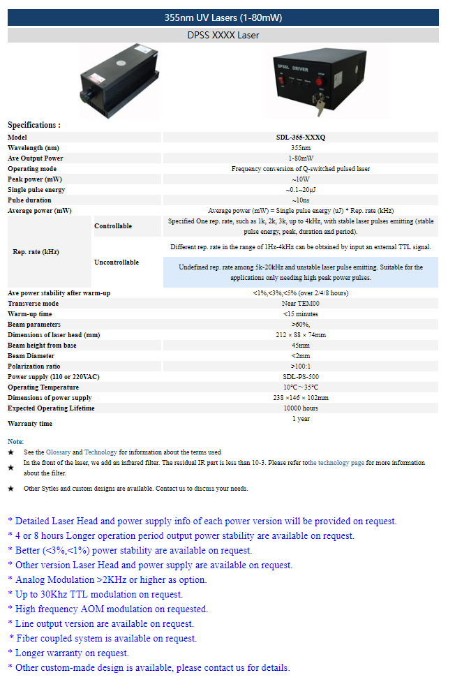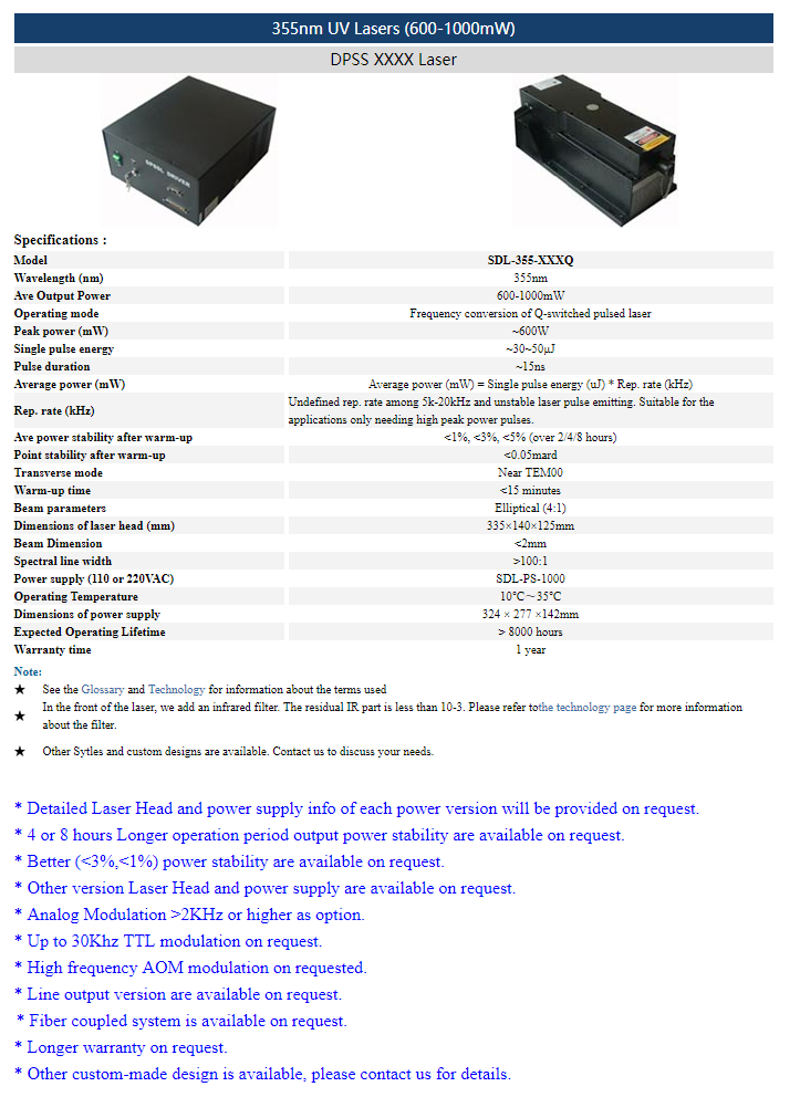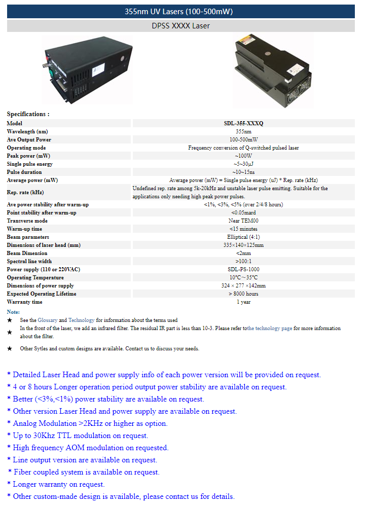 | 355nm | 5 ~ 30μJ | ~ 100W | nearTEM00 | |