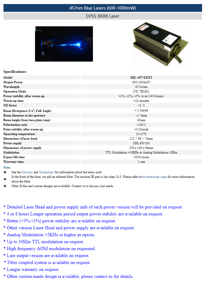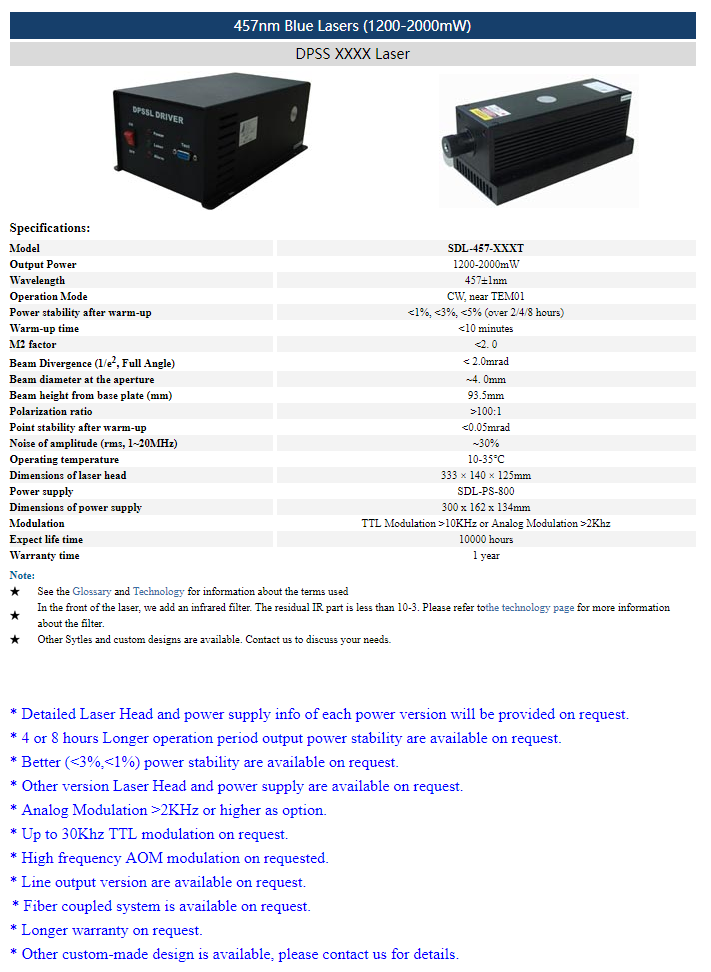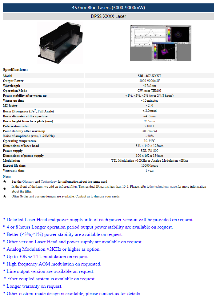 | 457nm | 3 ~ 9W | CW | nearTEM01 | |