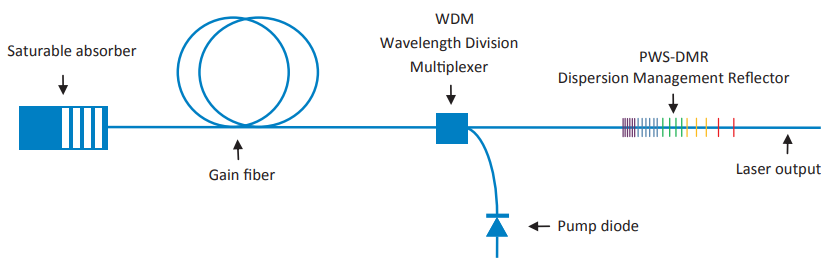 TeraXion社のPWS-DMRはFBGをベースにしたオールファイバタイプの波長分散制御デバイスで、どんな波長においても異常或いは正常分散を与えることができます。超短パルスモードロックレーザの出力カプラとして使用すると、レーザキャビティ全体の波長分散を設計することができ、レーザの動作モードや出力パルス幅を制御できます。また、PWS-DMRはそのバンドパス特性により波長安定性を改善し、超短パルスレーザの出力変化を最小化します。