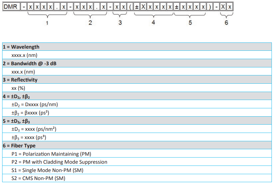 | 反射帯域幅 @ -3 dB FWHM(2) | 20±1 nm | 10±1 nm |