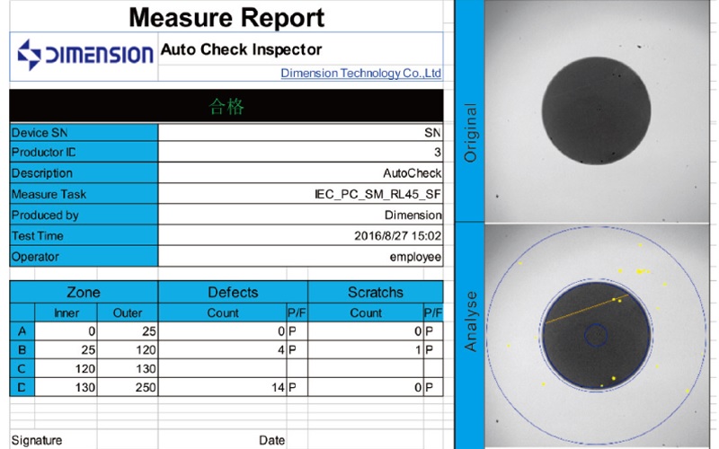 Dimension Technology社のAutoCheckは、オールインワンタイプのデスクトップ型自動光コネクタ端面検査装置で、1台で全ての作業を簡潔できます。 画像解析ソフトと高性能組み込みシステムにより、小さな欠陥を正確に特定できる便利な検査装置で、IEC規格に準拠しています。また、カスタム基準での検査も可能です。