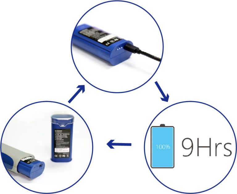 AutoGet WiFiには産業用交換可能な高機能バッテリーを使用しています。バッテリーは独立して充電でき、ほぼ9時間使用できます。また充電しながらの使用も可能です。 装置を連続して使用したい場合には、予備バッテリーを1個追加購入してください。 |