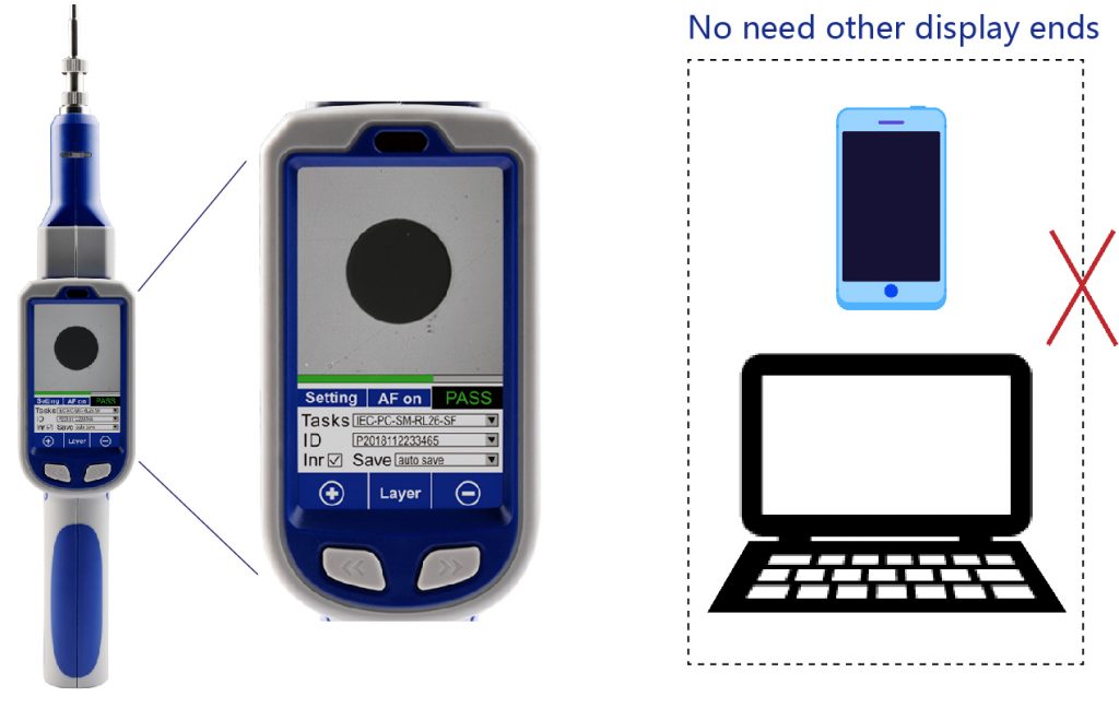 AutoGet WiFiは3.2インチHDタッチスクリーンで画像や分析結果を見ることができますのでファイバ端面のチェックが簡単です。また、光感度機能により、周囲の明るさに合わせて画面の明るさを自動調節できます。 |