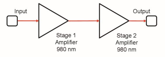 光ファイバアンプ:EYDFA-40は、Er/Ybドープダブルクラッドファイバを用いたCW出力10Wの高出力光アンプです。信号光を通常のEDFAで一旦増幅後、EYDFAで2段増幅することにより-25dBmの低信号レベルでも40dBmの出力に増幅することができます。