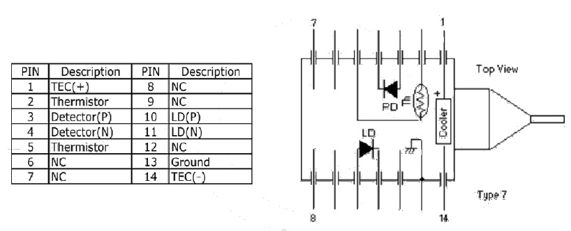 LP-FP-1310は、波長1310 nmの高出力ファブリペロー型LDです。歪み層多重量子井戸構造(st-MQW)のLDチップ、TEC、PIN-PDがハーメチックシールされた14-pin バタフライパッケージに内蔵されています。出力はPMファイバです。