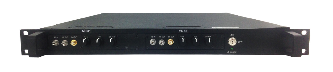 MD-50-DX-Rは、2チャンネルを1U筐体に組み込んだ50GHz帯域幅RFアンプです。各チャンネルはLN変調器を駆動するシングルエンド電圧を出力し、増幅信号を独立に制御、モニターできます。主な用途はEML, EMA, Mach-Zehnder変調器等の駆動で、60Gb/sの入力信号を>7.5Vp-pの駆動電圧レベルに増幅します。平坦な利得と群遅延応答でデジタル用途のための高品質、低ジッター電気駆動信号を発生しますので、有効帯域幅50GHzまでの広帯域RFアンプとしてもご利用いただけます。26dBのハイゲインですので多くのRoFリンクに利用可能です。