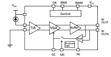 ■ 特徴・ハーメチックシール ・23GHzまで調節可能な帯域幅 ・VGA集積リニアTIA ・14Pin mini-DILパッケージ ・差動RF出力デュアルGPPOコネクタ ・MGC & AGCモード■ 用途・23 GHzまでのリニアレシーバ ・23 GHz アナログRoFリンク ・低ノイズアナログヘテロダイン検出 ・トランスポンダー & ラインカード設計■ 機能ブロック図![]() |