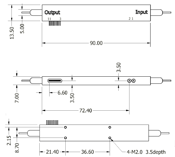 | 入力/出力ファイバタイプ | PANDA, PM1550, 400μmコーティング |
