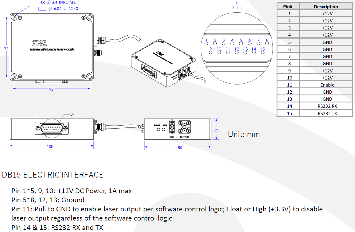 TWL-C-Mは、C-バンドをカバーするアレイ型DFBレーザを搭載した ITLA (Integrated Tunable Laser Assembly)型波長可変レーザモジュールです。従来の固定波長光源を使ったDWDMシステムでは保守用に多数のスペア光源を準備しておくことが必要でしたが、波長可変光源を用いることにより運用、保守コストが低減します。TWL-C-Mは、低い相対雑音強度(RIN)、高いサイドモード抑圧比 (SMSR)、狭線幅、優れた波長精度を特徴とし、OIF-ITLA-MSA規格に準拠しています。