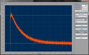 - パルスの既知のラウンドトリップ時間を用いて、リングダウン時間特性による損失を評価します。反射あたりのL; R = 1 – Lと仮定すると、反射率が得られます。