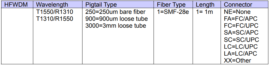 | パラメータ | 単位 | 1310/1550 (HFWDM ) |