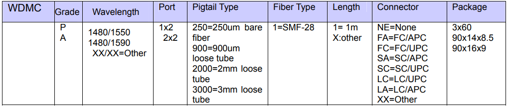 | パラメータ | 単位 | 1480/1550, 1480/1590 WDMC | |