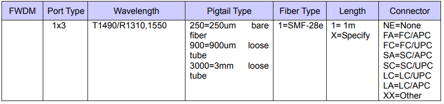 | 中心波長 | nm | 1310, 1490, 1550 |