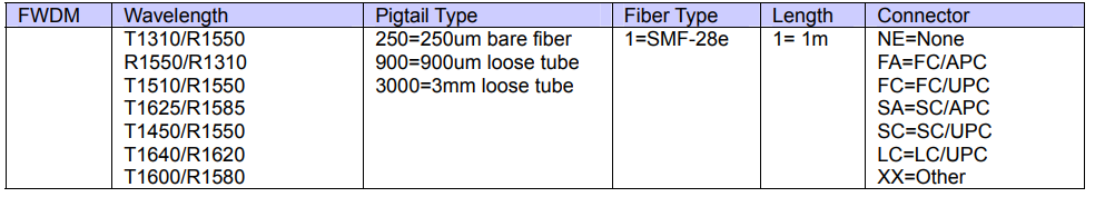 | パラメータ | 1310/1550 | 1510/1550 | 1625/1585 | 1640/1620 | 1600/1580 | 1450/1550 | ||