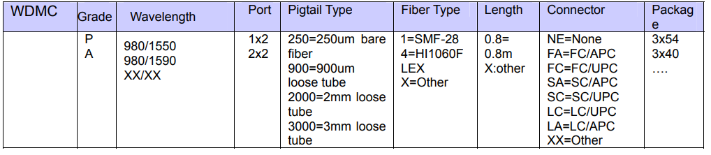 | パラメータ | 単位 | 980/1550, 980/1590 WDMC | 980/1550 Mixed Fiber WDMC | ||