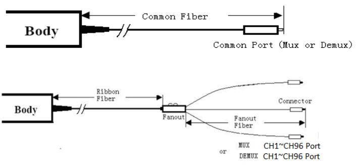 | 出力:SMF-28e, 4×12リボン 0.5±0.05m, ファンアウト900μmルーズチューブ 0.5±0.05m | |