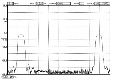 構造SMFのコアに間隔Λの周期的な屈折率分布が書き込まれており、λ=2nΛを満足するブラッグ波長と呼ばれる波長λの光のみを反射し、他の波長の光は透過します。 |