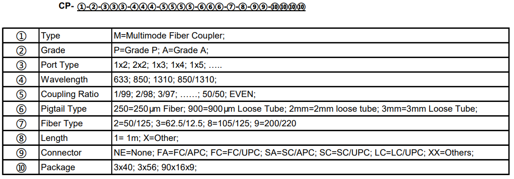 | ファイバタイプ | 50/125, 62.5/125, 105/125, 200/220um | ||