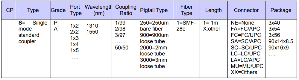 オーダリング 参照例)CP-S-P-1×2-1310-50/50-900-1-1-FC