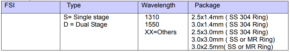 | 中心波長(nm) | 1310, 1550, CWDM波長 | |