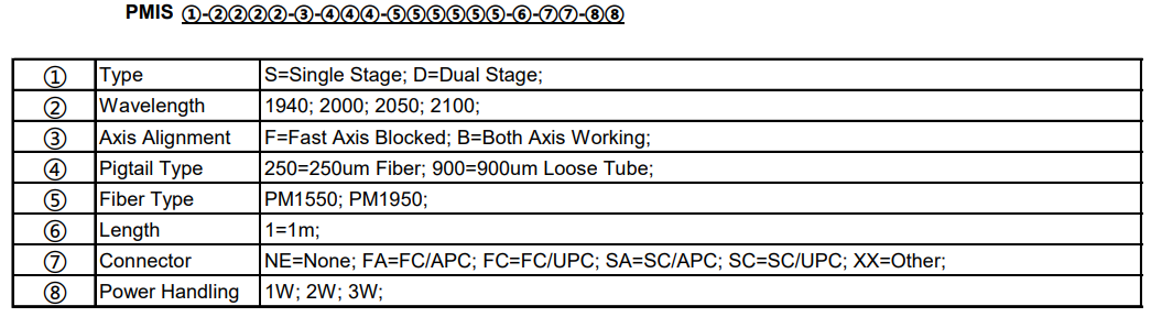 光アイソレータは1方向に進む光のみを透過し逆方向の光をブロックする部品で、光源への戻り光を防止に必要です。入射光が直線偏光の場合に対応する偏光依存型と入射光の偏光状態によらない偏光無依存型があります。本製品は波長2000nm用の偏光無依存型光アイソレータで、最大入射光強度1W、2W、3Wのタイプがあります。