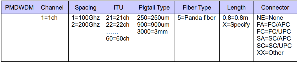 | 中心波長 (nm) | 1529.55 – 1561.42 (ITU Grid 20 – 60) | ||