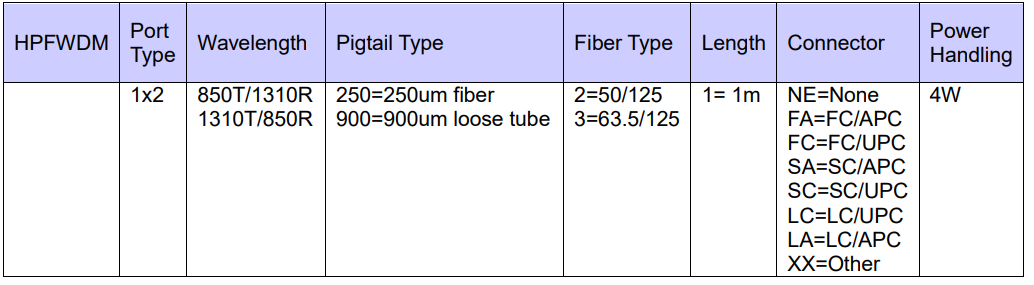 WDMフィルタは光学多層膜フィルタを使って異なる波長の光を合波したり分離する部品です。本製品は4Wまで入力できるハイパワーマルチモードWDMフィルタで、1310nm/850nmを合分波できます。