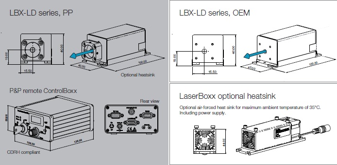 | アナログ変調例 LBX-405-100-CSB 3 MHz max | デジタル変調例 LBX-488-100-CSB Rise/Fall times < 2ns |