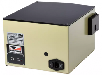 分光器とは、白色光などの広帯域光源の光の色を空間的に分離するための装置です。分離するための現象は大きく2つに分かれ、一つはプリズム内の光分散の現象、もう一つは回折格子(グレーティング)を使用する回折の現象です。ファイバーラボで取り扱っているBENTHAM社の分光器は回折格子(グレーティング)を使用しています。