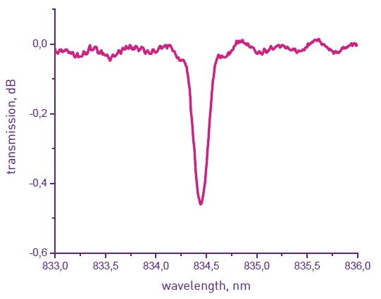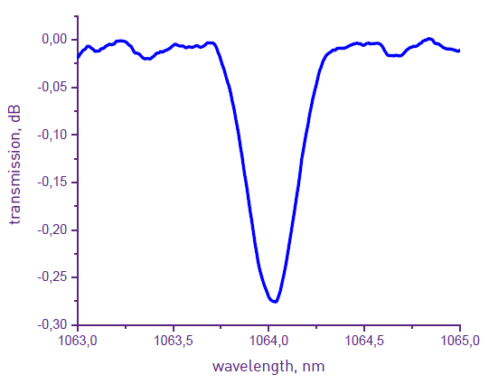 波長固定FBG(GTL-FBG-WL-810)は、レーザダイオードの外部反射器として使用されます。このようなFBGを使用することによって、ポンプ半導体レーザ(LD)および単一周波数(狭線幅)レーザの波長発生を安定させることが容易になります。FWHM 0.3nm~0.8nm、反射率 2%~5%の低反射グレーティングは、ポンプパワーレーザーの安定化に最適です。半導体レーザ結晶の近くにFWHMが0.1nm、反射率が10%~20%のFBGが単一周波数光源として使用されています。±0.02nmまでの正確な波長位置を変えられる波長固定FBGを提供しております。