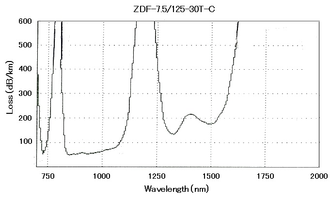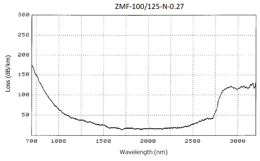 AlF3系ファイバは、AlF3を主成分とするふっ化物ファイバで、可視から3.5μmまでの光を伝送できます。ZBLANファイバより耐湿性が良いためEr-YAGレーザの2.9μm光伝送や赤外分光などに使用されています。