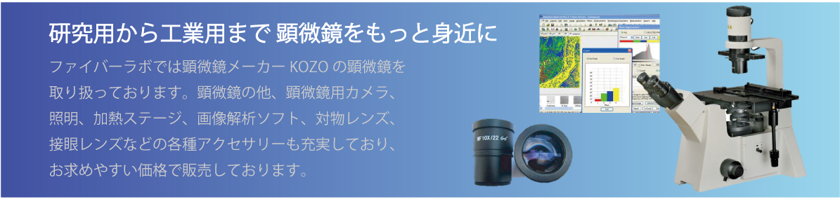 光学顕微鏡は肉眼で見えない小さなものを数十倍から1500倍くらいの倍率まで拡大して見る装置で、0.2μmくらいのものまで観察できます。基本的な光学顕微鏡は非常に単純な構成をしており、可視光とレンズのシステムを使用しているという点は共通ですが、分解能とサンプルのコントラストを向上させることを目的とした複雑な設計が施された種類のものも多数存在します。対物レンズによって倍率・開口数・作動距離などが異なり様々な種類のサンプルを観察することができます。