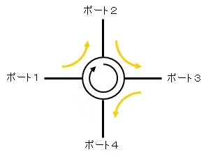 (フルサーキュレーティングでない)4ポートタイプではポート1→ポート2、ポート2→ポート3、ポート3→ポート4のように光が進み(図2)、