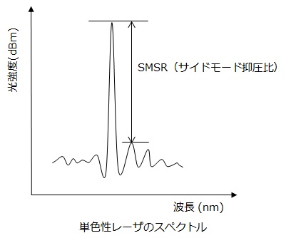 ■SMSR (Side Mode Supression Ratio:サイドモード抑圧比)DFB型半導体レーザや単一周波数ファイバレーザにおいて、単色性(